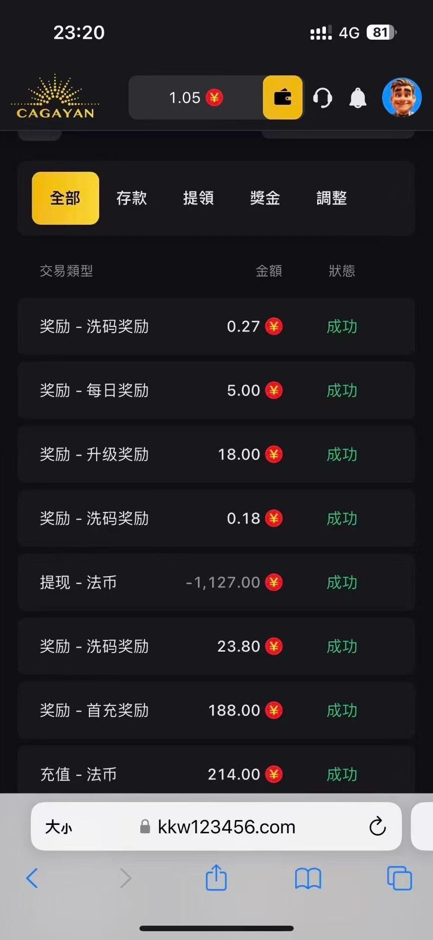 前两天玩100+88提了1千5