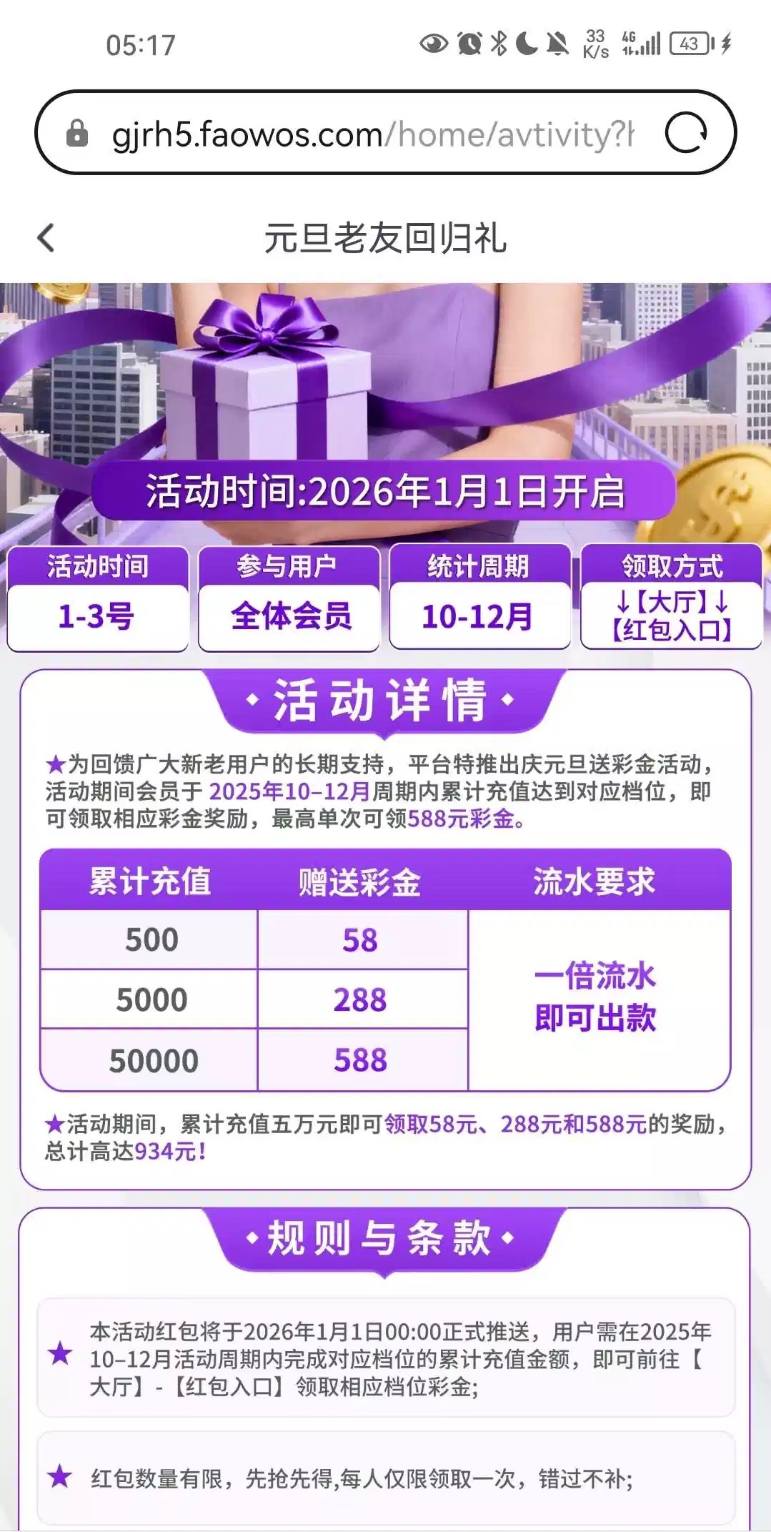1月1日老友回归礼 10-12月积累充值500以上别错过