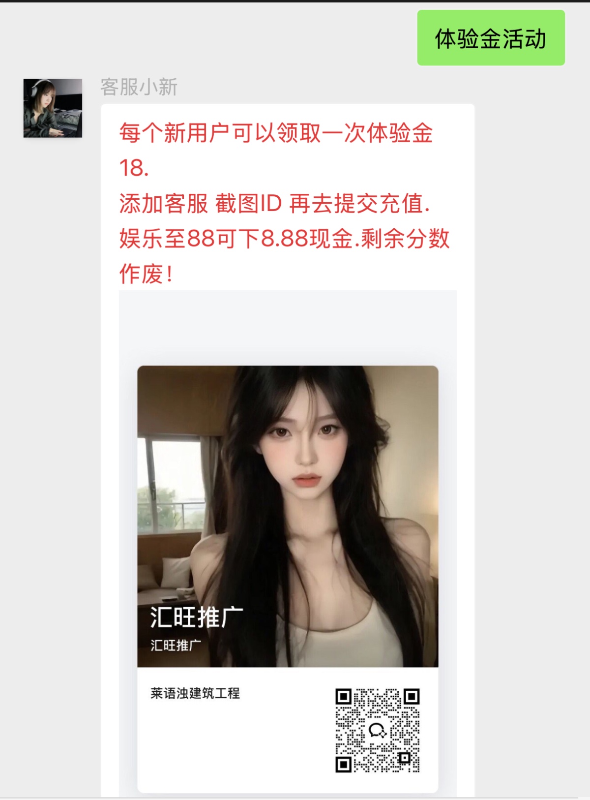 扫码登陆找客服领18体验金